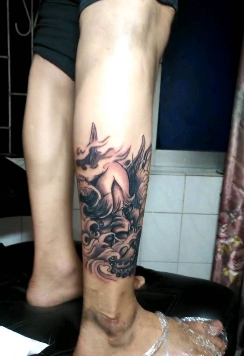 黑灰满背纹身图案