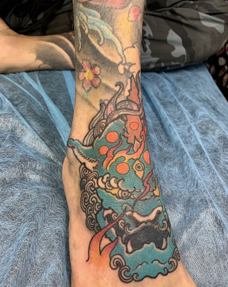 当前位置: 首页 >海南省海口市纹身店-八门刺青纹身图案>脚背唐狮纹身图片_脚部新传统唐狮纹身图案