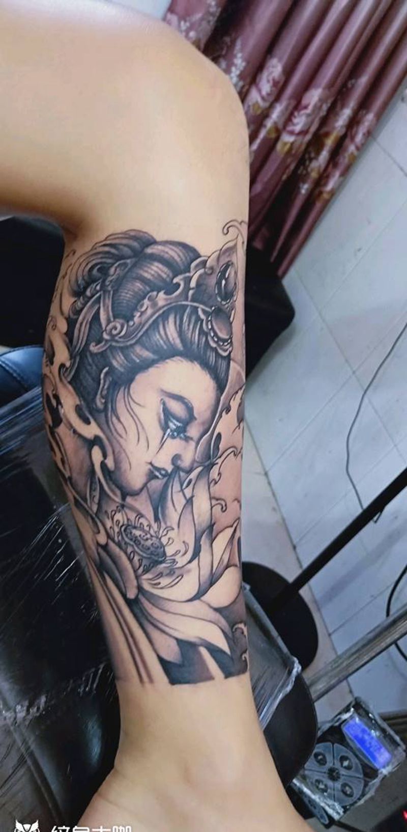 • T网红王老大花腿龙纹身图片_腿部新传统纹身图案