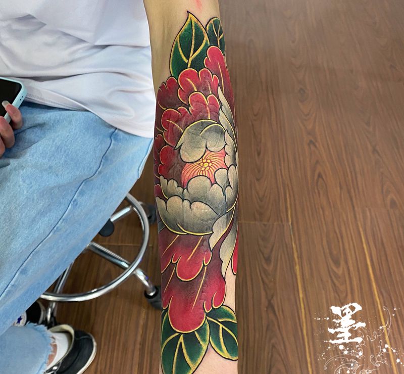 当前位置: 首页 >广西贵港市纹身店-墨匠刺青纹身图案>牡丹纹身图片_手臂手部新传统纹身图案