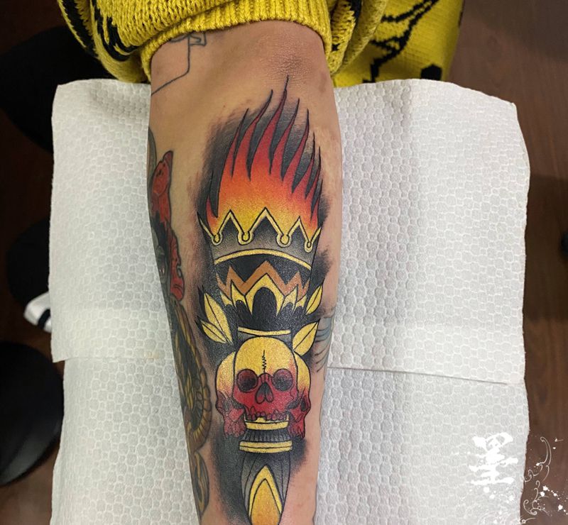 当前位置: 首页 >广西贵港市纹身店-墨匠刺青纹身图案>火炬骷髅纹身图片_手臂手部New SchoolOld School纹身图案