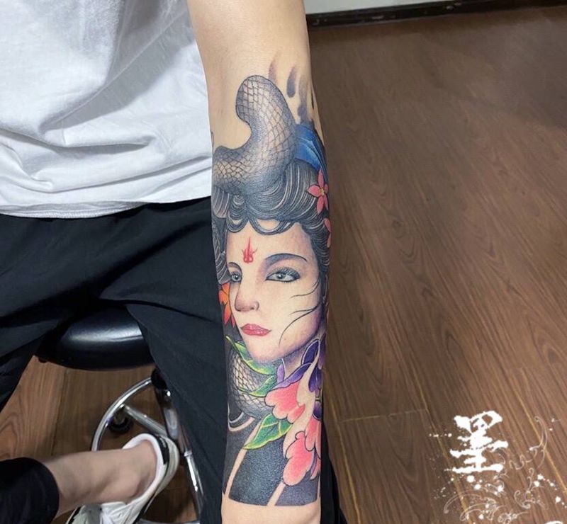 当前位置: 首页 >广西贵港市纹身店-墨匠刺青纹身图案>艺妓纹身图片_手臂新传统纹身图案