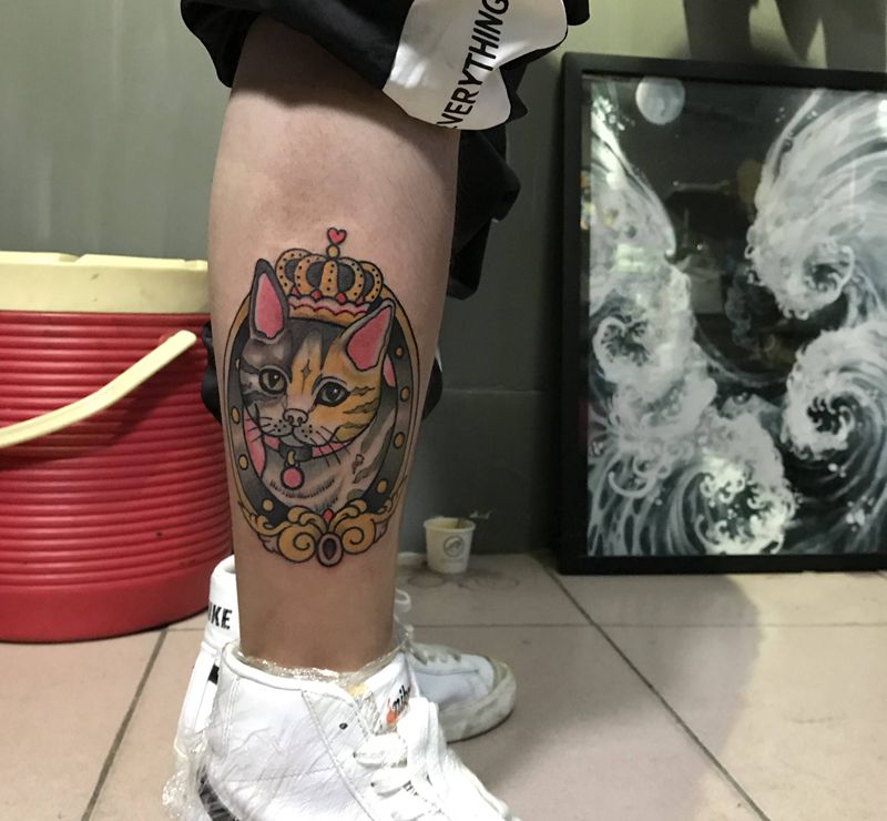 当前位置: 首页 >广西贵港市纹身店-罐头刺青纹身图案>客人自带纹身图片_腿部Old School纹身图案