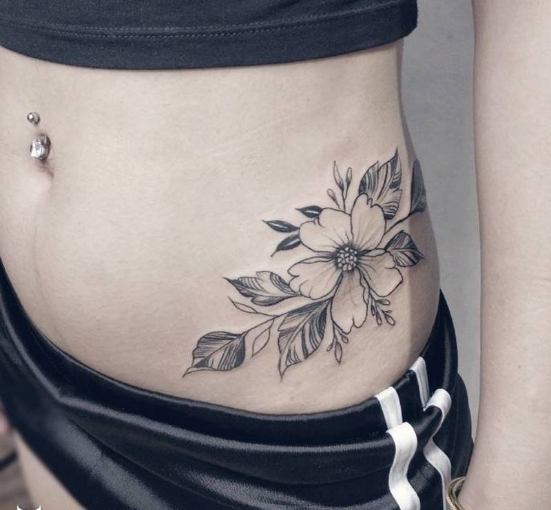 • 时尚性感的腹部莲花纹身图案