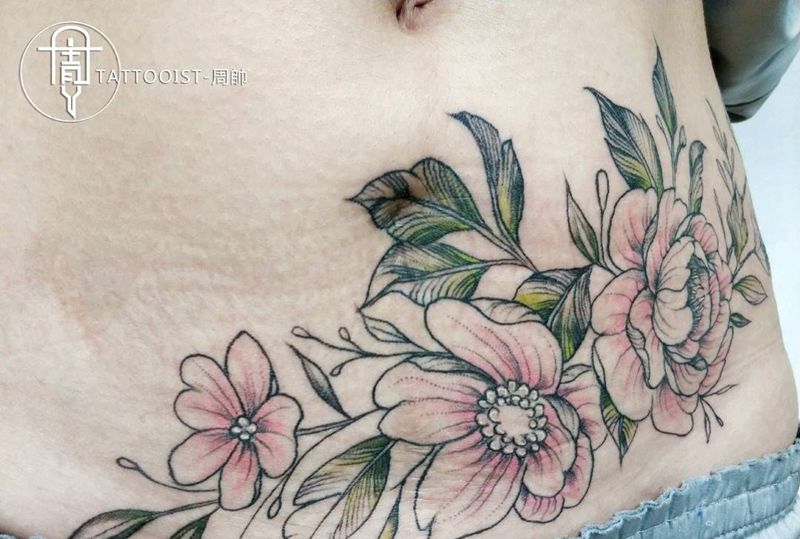 素花:疤痕遮盖纹身图片