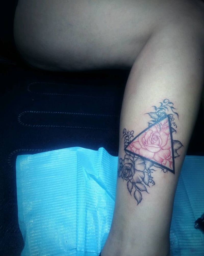 • 手背潮流时尚的玫瑰花眼睛纹身图案