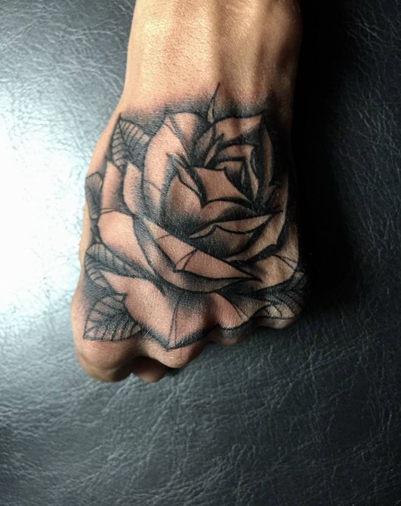 • 手背潮流时尚的玫瑰花眼睛纹身图案
