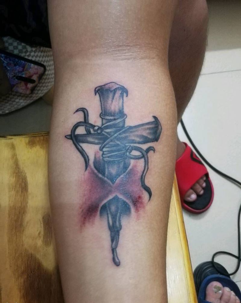 当前位置: 首页 >海南省海口市纹身店-艺莹刺青纹身图案>小臂十字架纹身图片_手臂欧美写实纹身图案