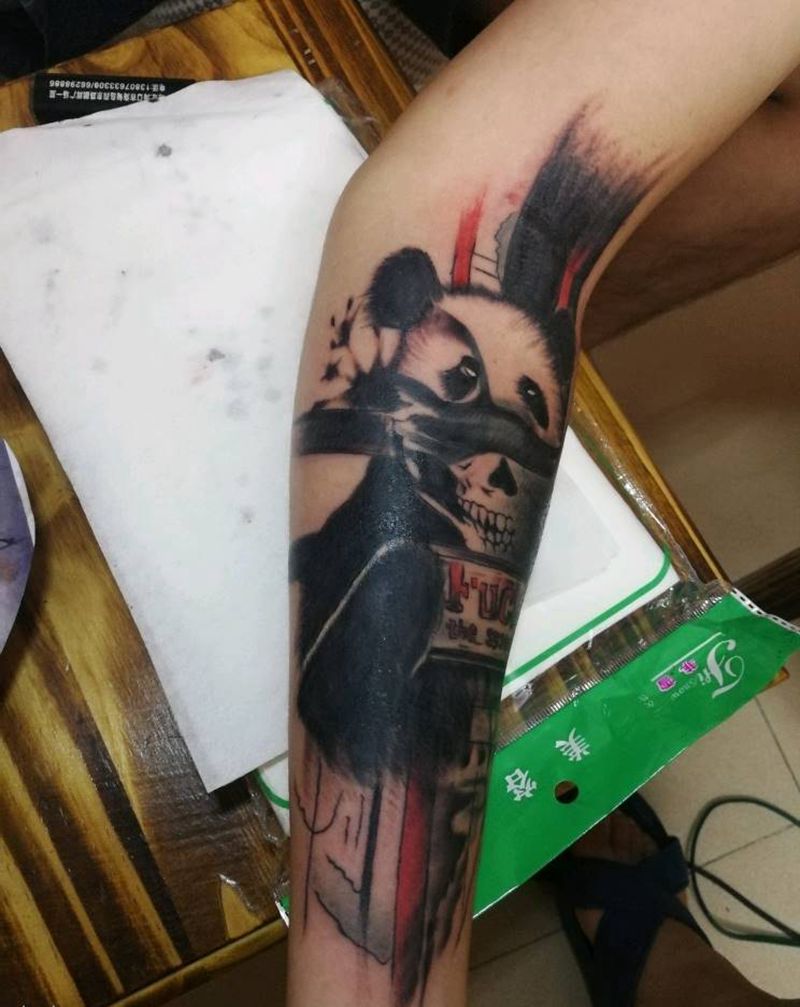 当前位置: 首页 >海南省海口市纹身店-艺莹刺青纹身图案>暴力熊猫遮盖纹身图片_手臂水墨欧美写实纹身图案