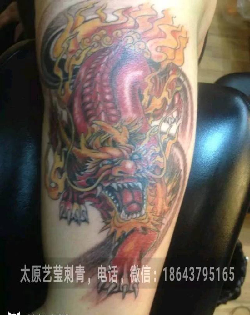 • T网红王老大花腿龙纹身图片_腿部新传统纹身图案