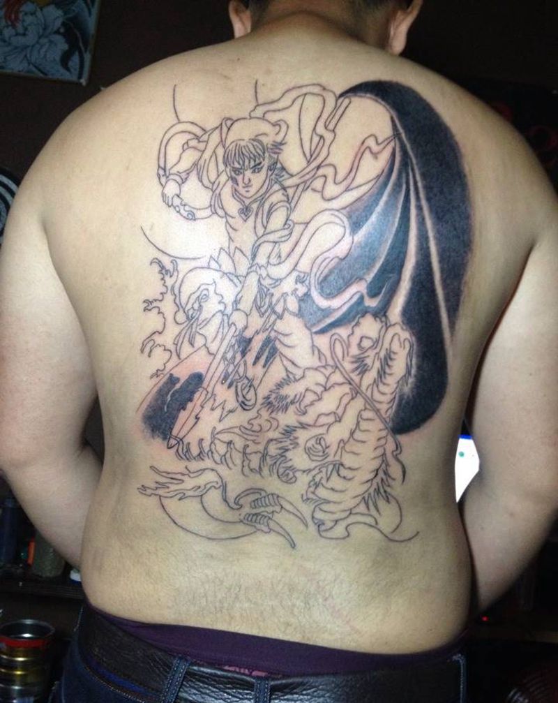 当前位置: 首页 >海南省海口市纹身店-艺莹刺青纹身图案>满背哪吒纹身图片_成品背部传统人物鬼神纹身图案