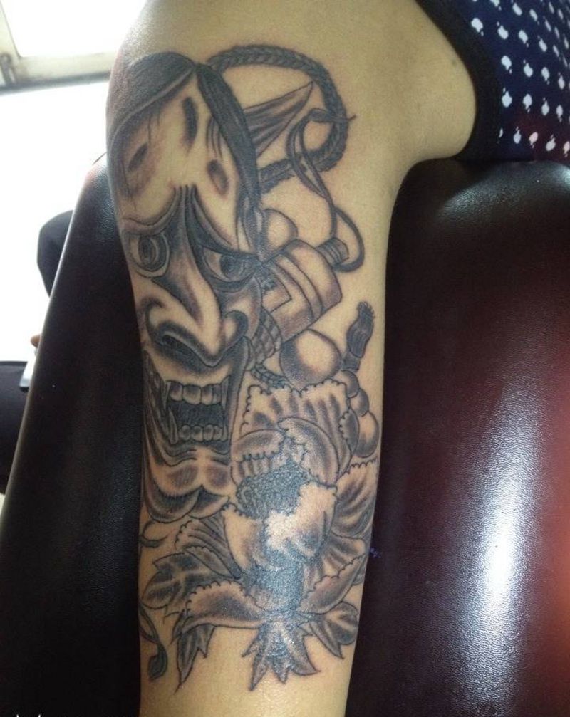 大臂般若纹身图片_成品手臂传统鬼神纹身图案