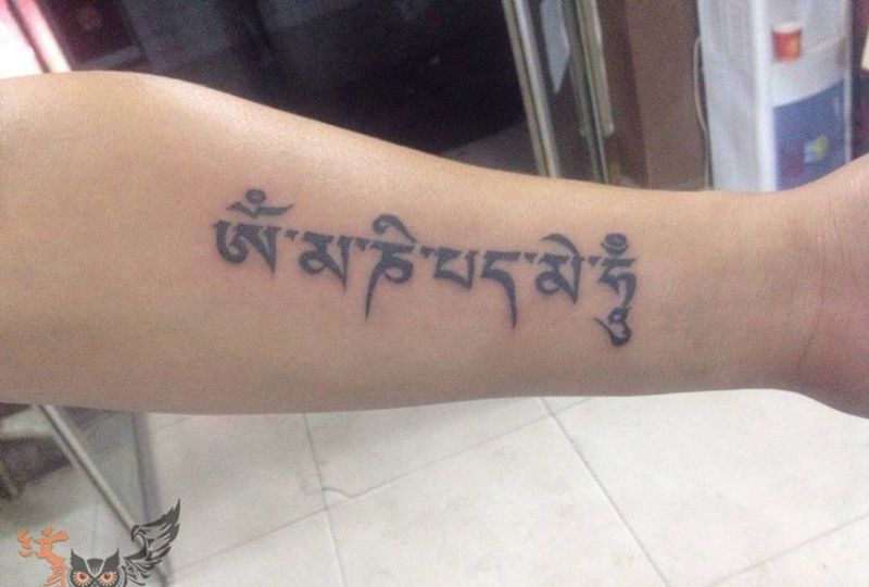 六字真言纹身图片_成品手臂传统字符纹身图案