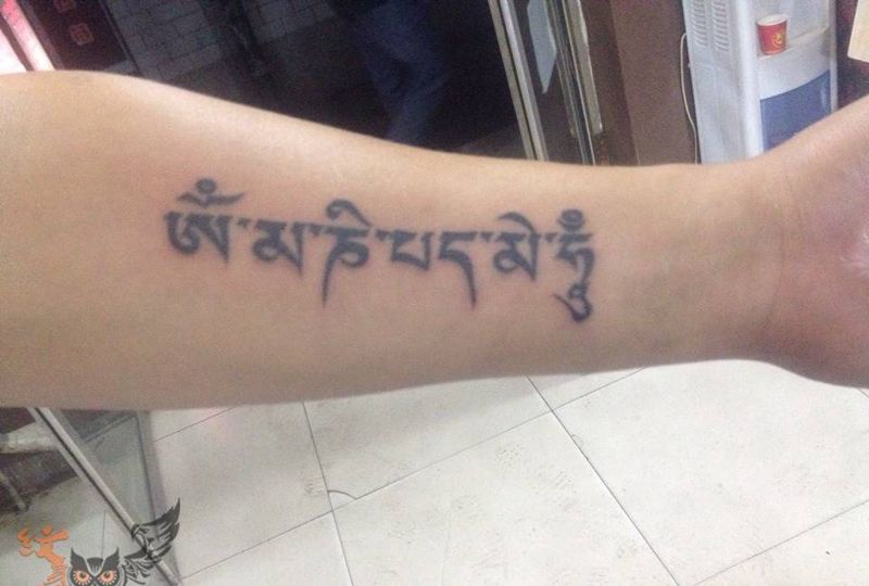 六字真言纹身图片_成品手臂传统字符纹身图案
