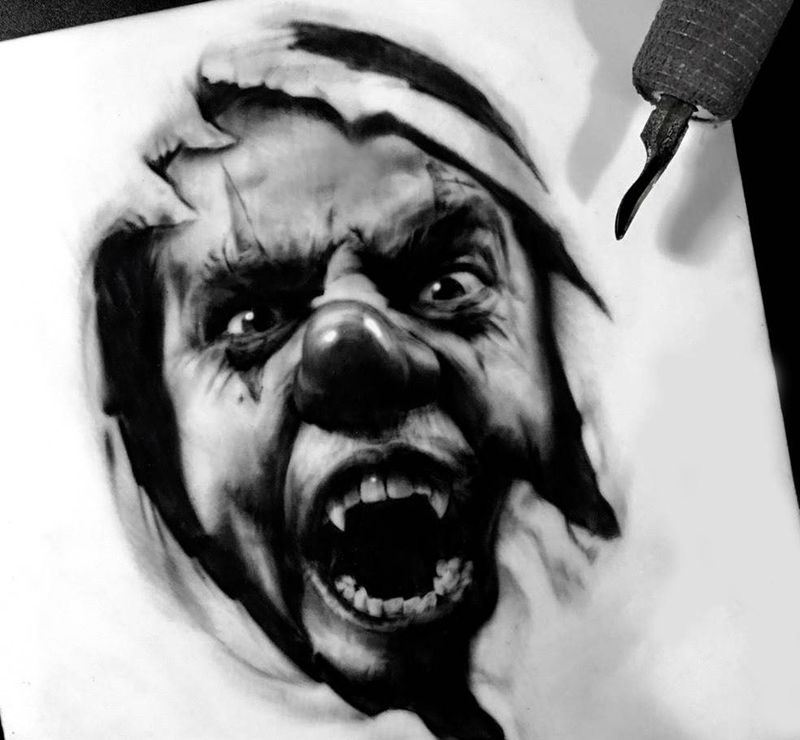 当前位置: 首页 >重庆市纹身店-白乌鸦刺青纹身图案>小丑纹身图片_写实纹身图案