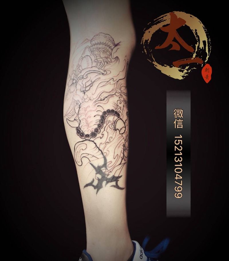 小腿象神,忽略小图腾纹身图片_腿部新传统纹身图案