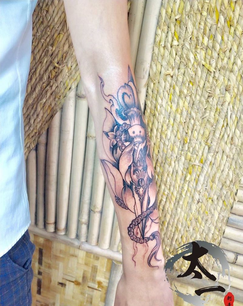 当前位置: 首页 >重庆市纹身店-太一刺青纹身图案>手臂魔杵纹身图片