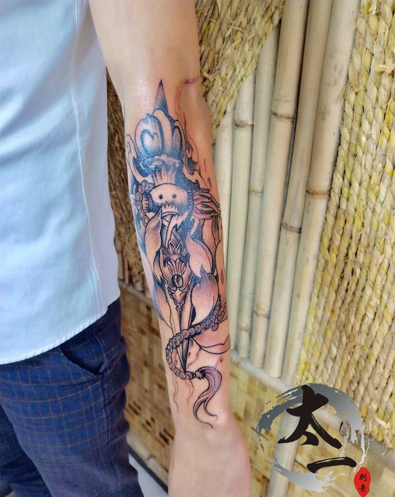 当前位置: 首页 >重庆市纹身店-太一刺青纹身图案>手臂魔杵纹身图片