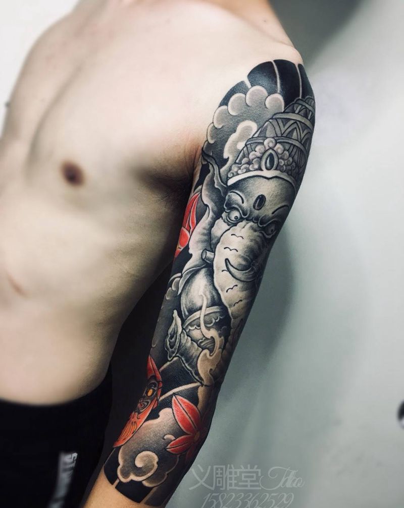 七分袖象神纹身纹身图片_手臂老传统新传统重庆纹身图案