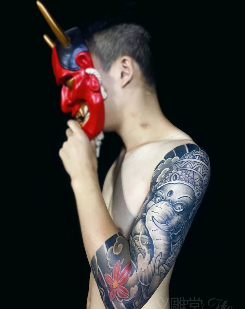 七分臂象神纹身纹身图片_手臂老传统新传统重庆义雕堂刺青纹身图案