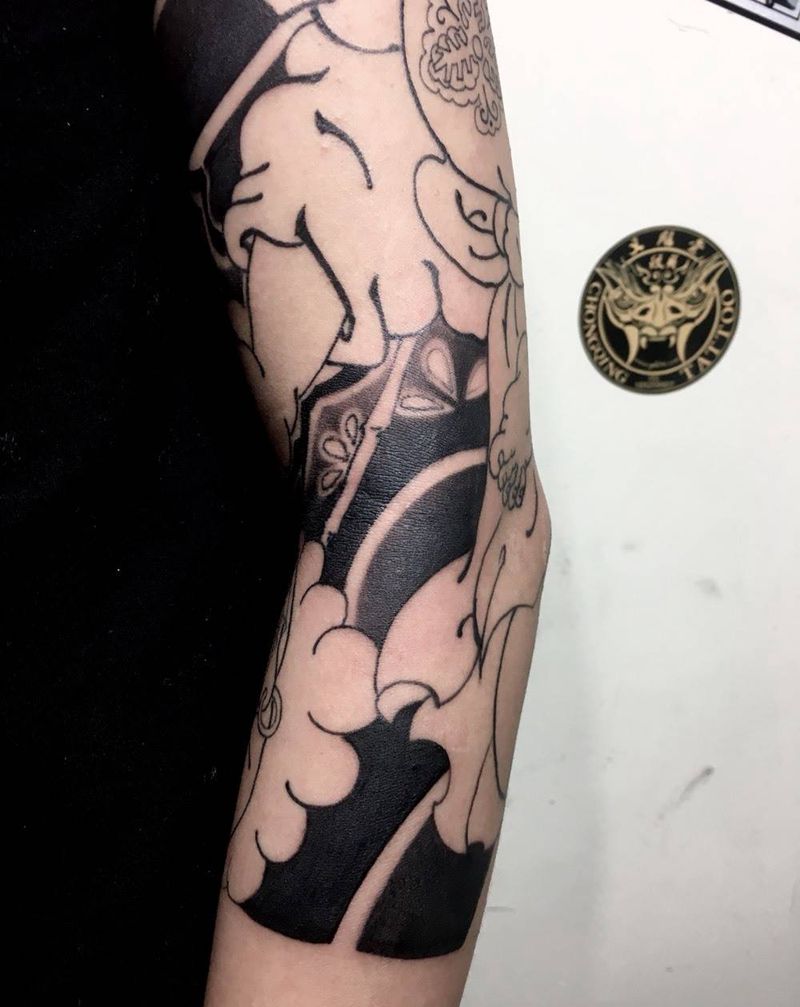 当前位置: 首页 >重庆市纹身店-义雕堂纹身纹身图案>板雾纹身图片_手臂老传统重庆纹身图案