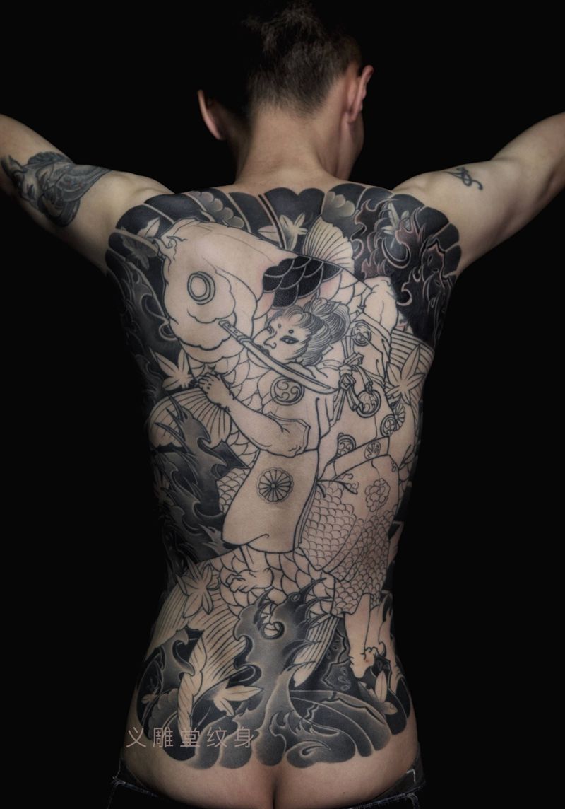 当前位置: 首页 >重庆市纹身店-义雕堂纹身纹身图案>鬼若丸鲤鱼退治纹身图片_背部老传统重庆满背纹身图案