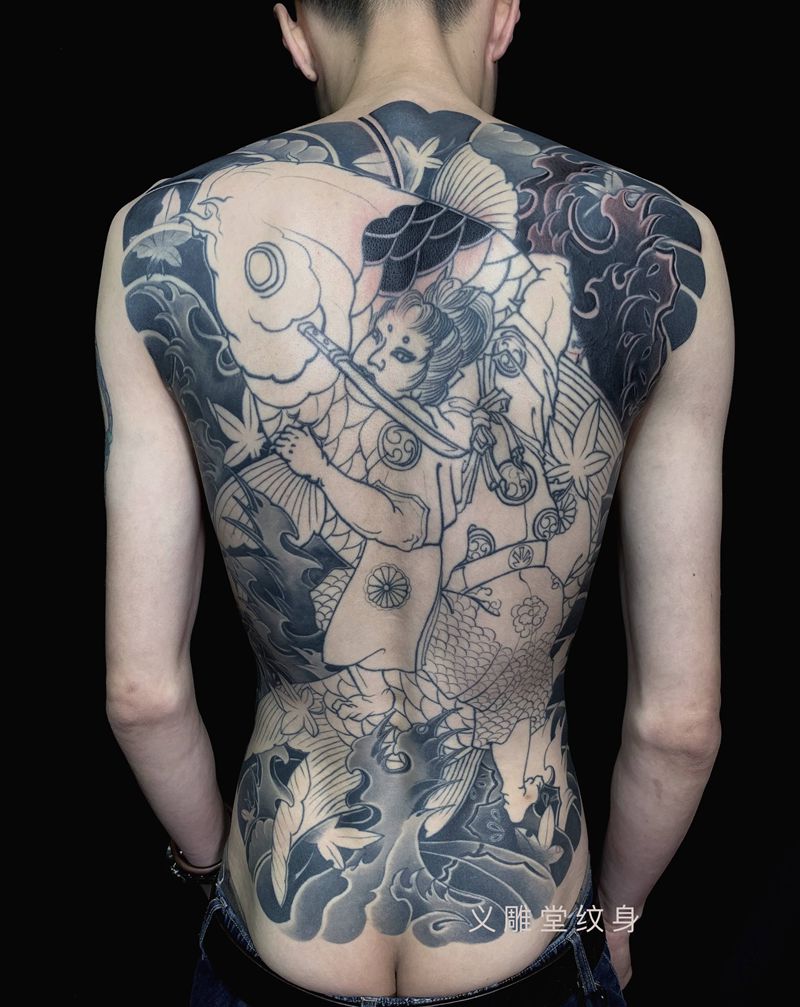当前位置: 首页 >重庆市纹身店-义雕堂纹身纹身图案>鬼若丸鲤鱼退治纹身图片_背部老传统重庆满背纹身图案