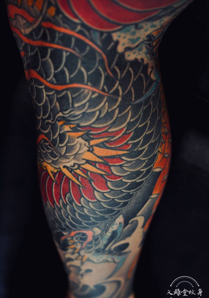 • T网红王老大花腿龙纹身图片_腿部新传统纹身图案