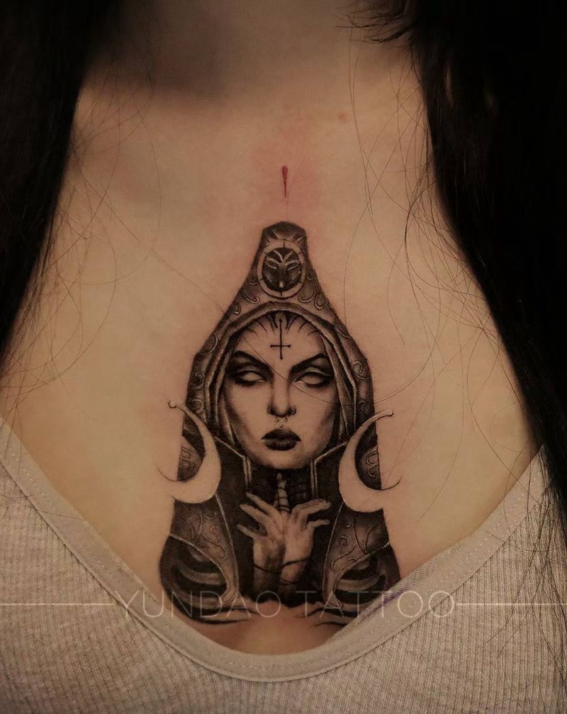 酷女孩纹身图片_胸部欧美写实纹身图案