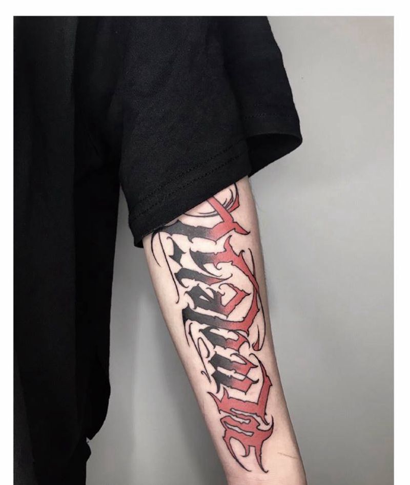 当前位置: 首页 >重庆市纹身店-風林刺青纹身图案>花体字纹身图片_手臂花体字彩色花体字纹身图案