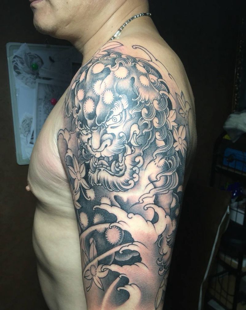 当前位置: 首页 >重庆市纹身店-歸刺青纹身图案>黑灰唐狮,未完纹身图片