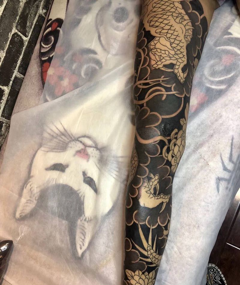 • T网红王老大花腿龙纹身图片_腿部新传统纹身图案