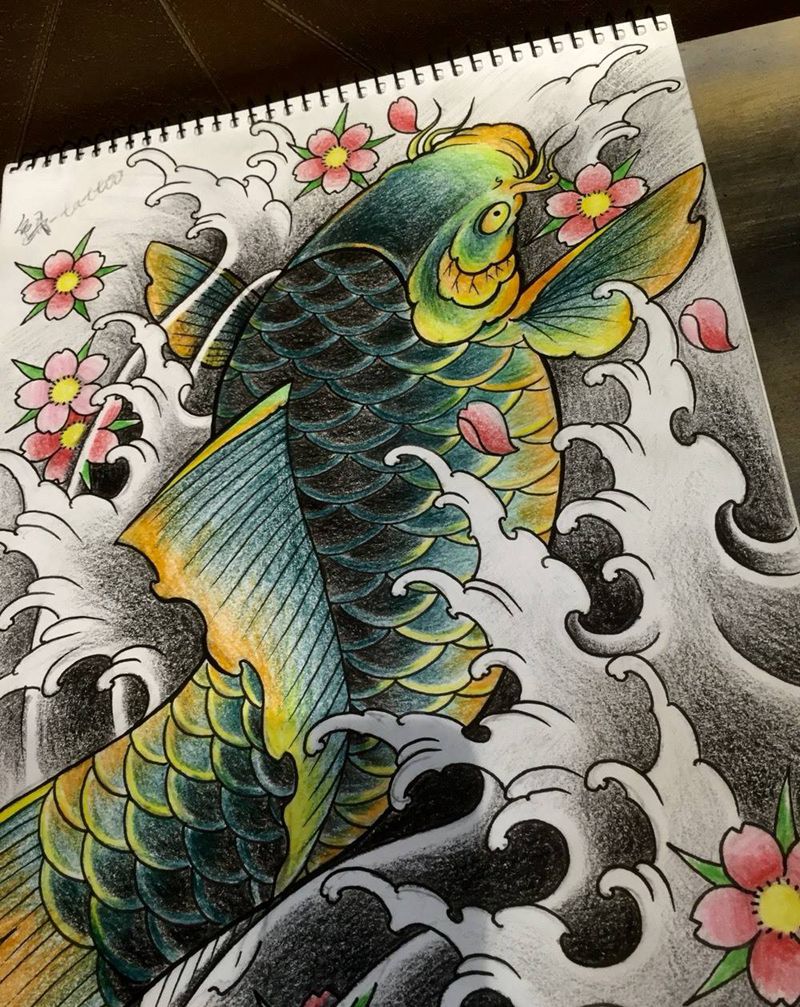 原创鲤鱼纹身图片_手稿肩部背部手臂腿部手部传统原创重庆重庆刺青纹身图案