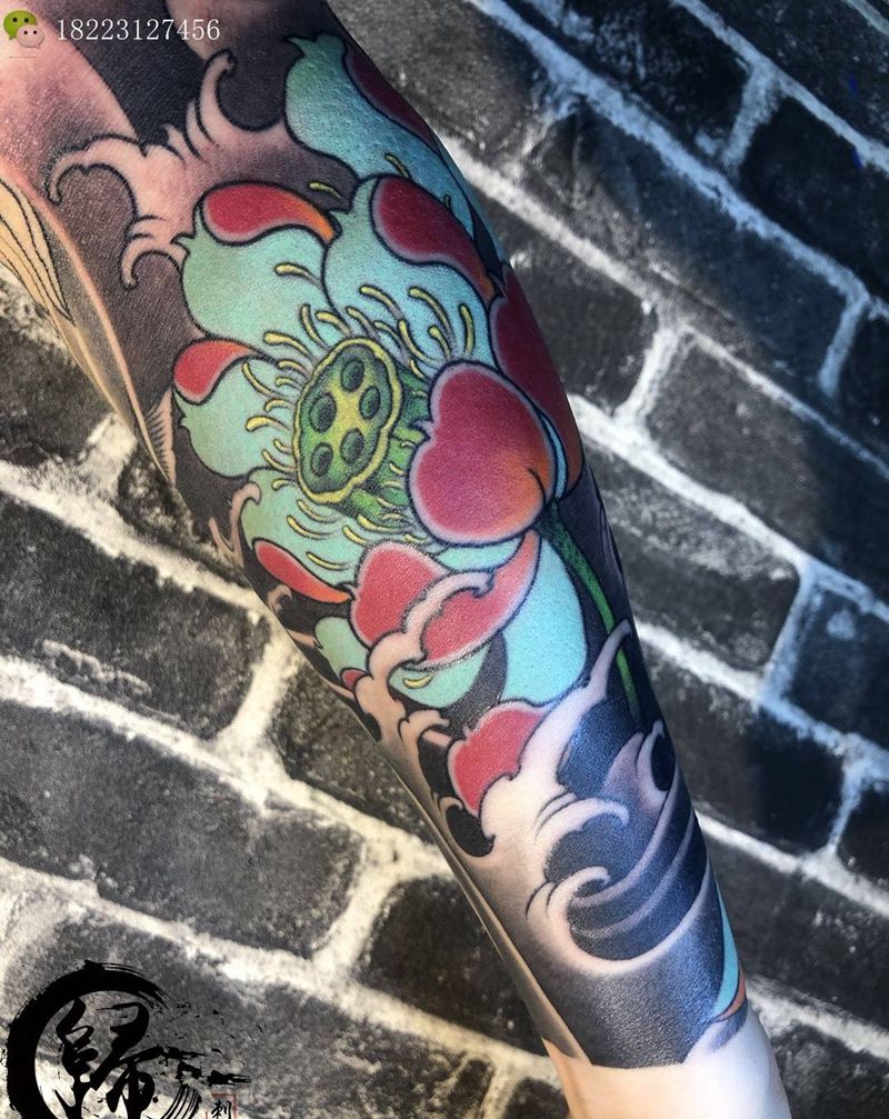 当前位置: 首页 >重庆市纹身店-歸刺青纹身图案>荷花纹身图片_手臂手部新传统荷花纹身图案