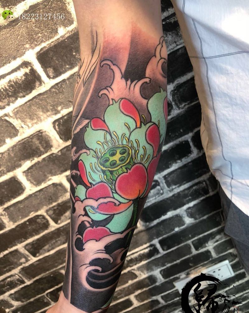 当前位置: 首页 >重庆市纹身店-歸刺青纹身图案>荷花纹身图片_手臂手部新传统荷花纹身图案