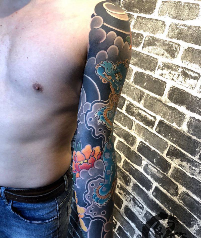 当前位置: 首页 >重庆市纹身店-歸刺青纹身图案>老传统唐狮花臂纹身图片_手臂手部老传统唐狮纹身图案