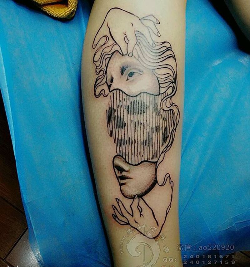 当前位置: 首页 >重庆市纹身店-TATTOO墨针堂纹身纹身图案>人物线条点刺纹身图片_腿部手臂图腾点刺纹身图案