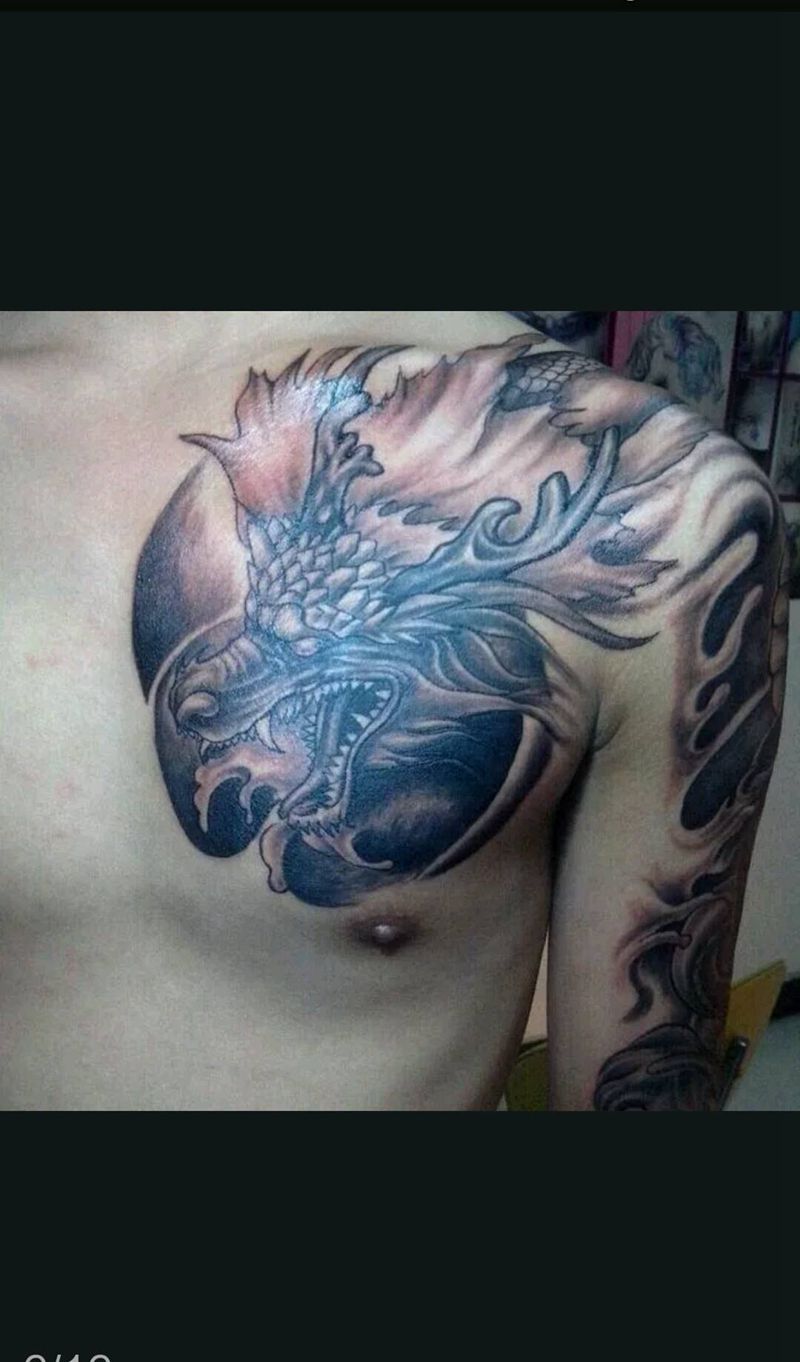 当前位置: 首页 >重庆市纹身店-TATTOO墨针堂纹身纹身图案>半甲龙纹身图片_胸部手臂纹身图案