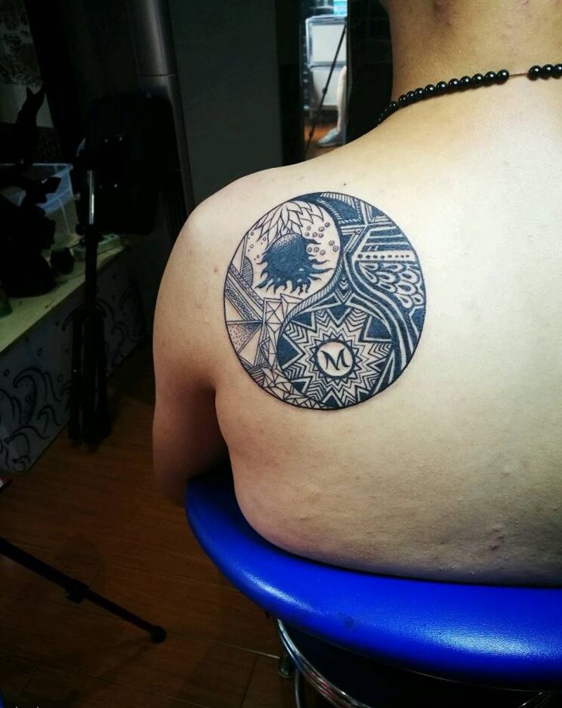 太极图腾遮盖纹身图片