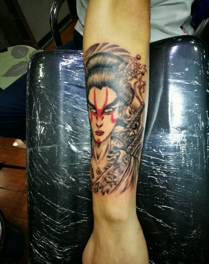 当前位置: 首页 >重庆市纹身店-TATTOO墨针堂纹身纹身图案>小臂艺妓纹身图片