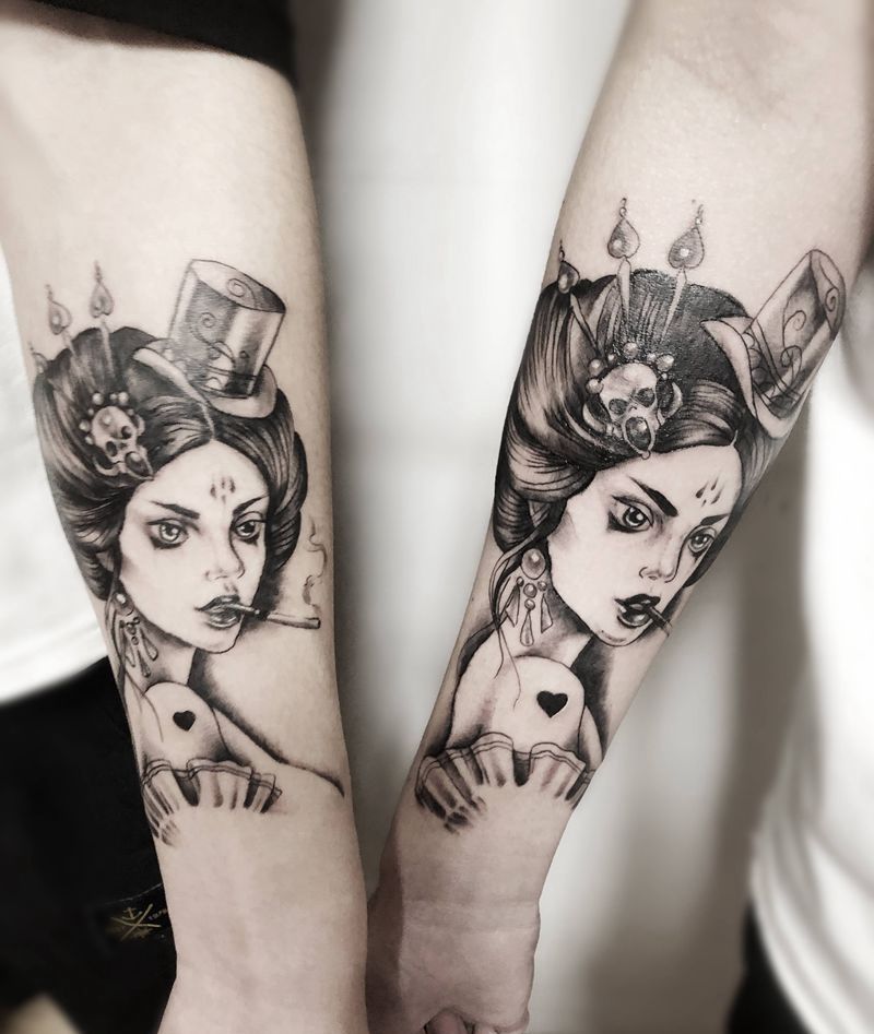 当前位置: 首页 >重庆市纹身店-Hidden刺青纹身图案>抽烟的艺妓纹身图片_手臂Old School纹身图案