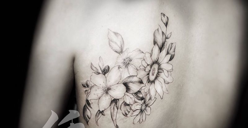 • 女性大花胸纹身_43张霸气漂亮的女性大花胸纹身图案作品