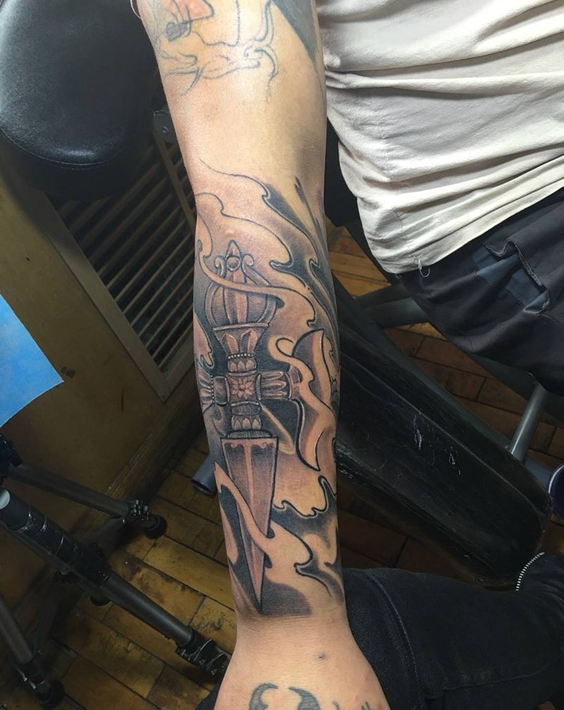 降魔杵纹身图片_成品手臂传统宗教纹身图案