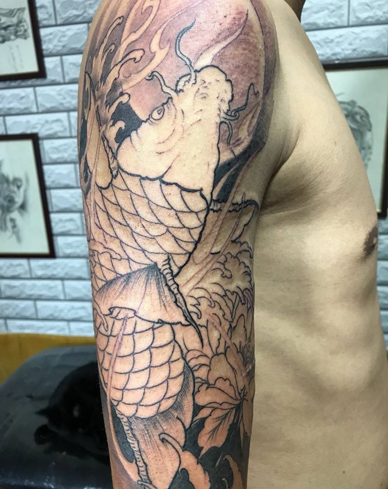 • T网红王老大花腿龙纹身图片_腿部新传统纹身图案