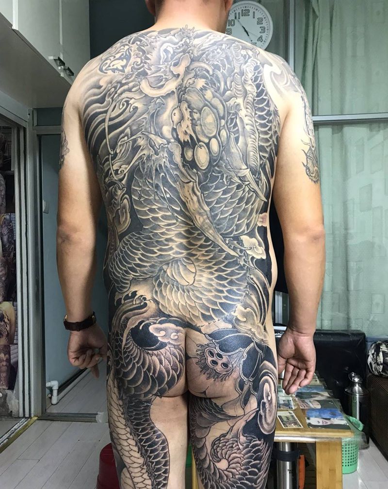 • T云龙九郎纹身图片_背部老传统云龙九郎纹身图案