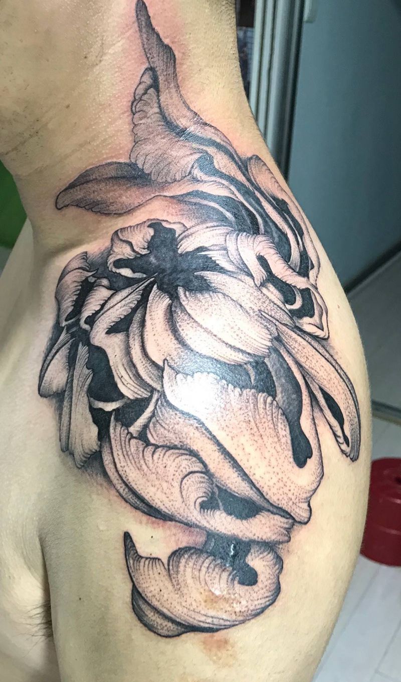 • 女性大花胸纹身_43张霸气漂亮的女性大花胸纹身图案作品