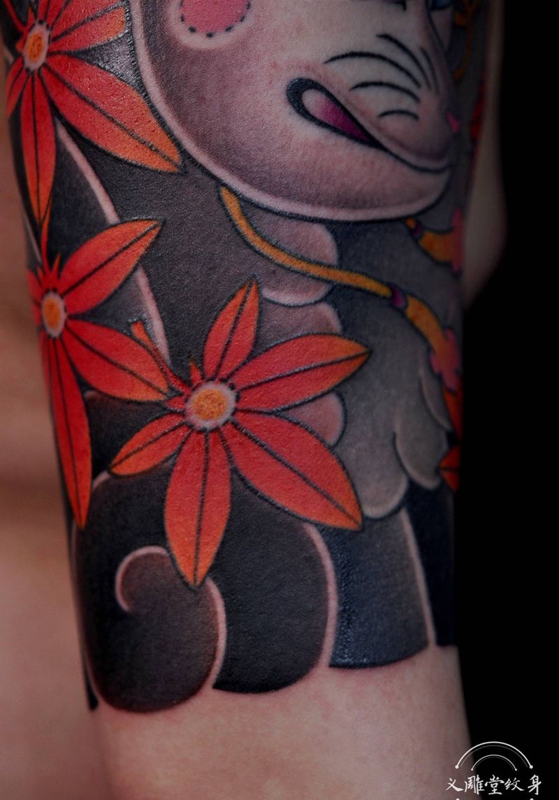 当前位置: 首页 >重庆市纹身店-义雕堂刺青纹身图案>狐面包大臂纹身图片_手臂老传统纹身图案