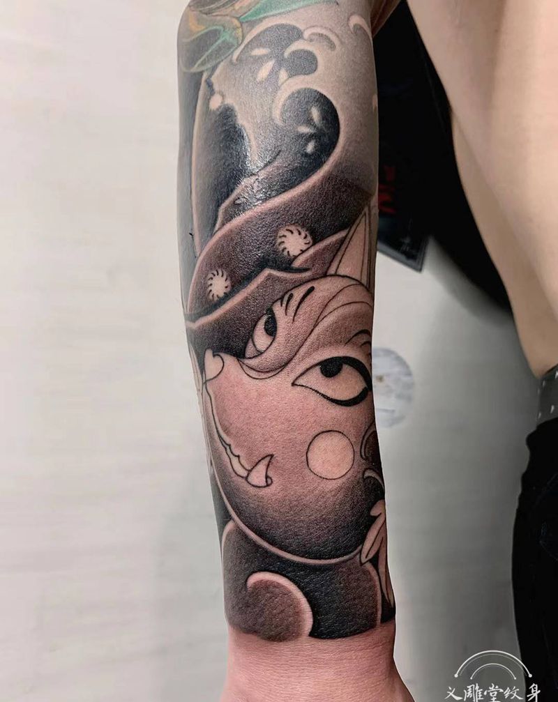 当前位置: 首页 >重庆市纹身店-义雕堂刺青纹身图案>狐面纹身图片_手臂老传统纹身图案