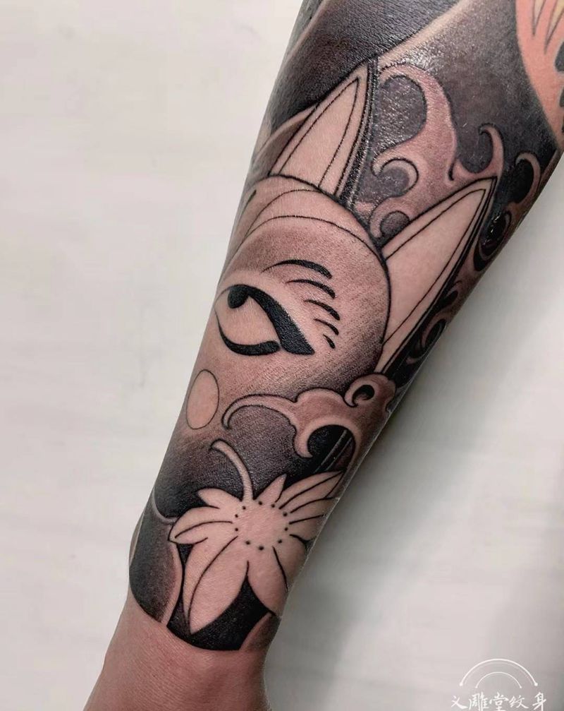 狐面纹身图片_手臂老传统纹身图案