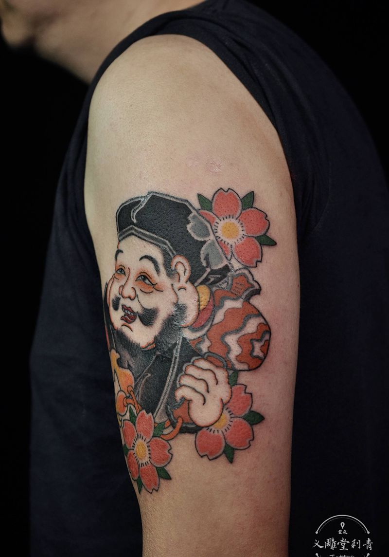 当前位置: 首页 >重庆市纹身店-义雕堂刺青纹身图案>大臂福神大黑天纹身图片_手臂老传统纹身图案